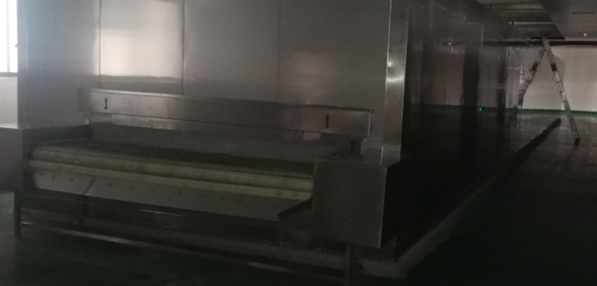 Fast frozen tunnel for rice dumplings, required temperature - 35℃, the design requirement is 1.2 T/h, and the final center temperature of rice dumplings required to be - 16℃ ~ -18 ℃. The project adopts two sets of Hanbell LT-S-L series wide temperature zone two-stage low-temperature refrigeration compressors and one set of evaporative condenser low-temperature quick freezing unit.