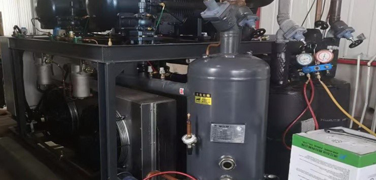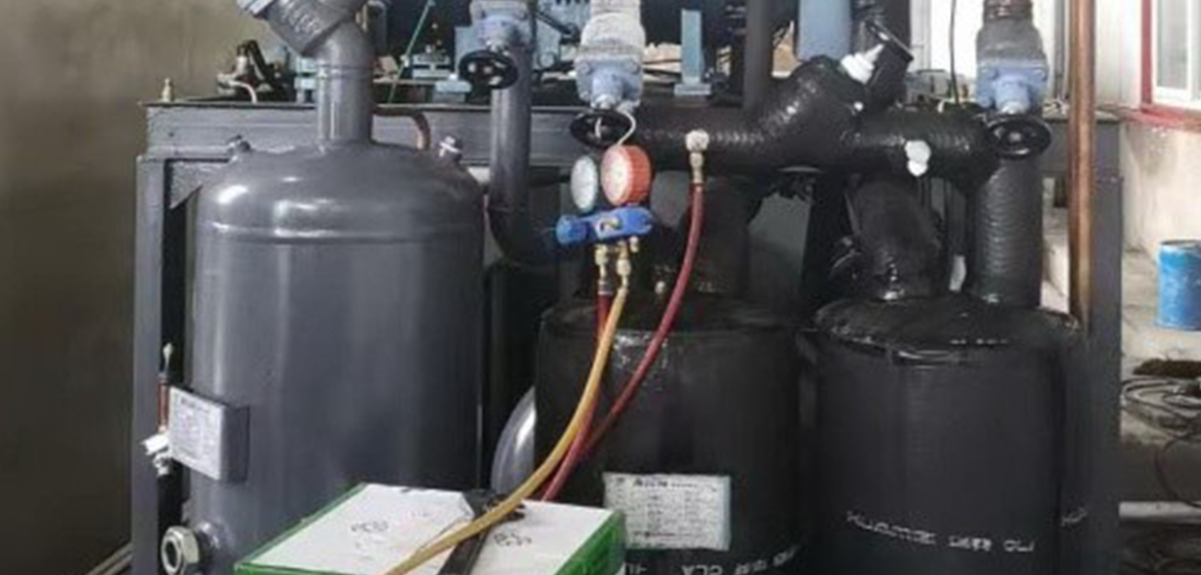 速冻猪头肉及肉下水(托盘入库),常温20℃入库,冻至中心温度-15℃,速冻冷库1间,面积:84m2 。机组配置:选用汉钟精机LB-PLUS系列单级高效低温冷冻压缩机2台并联,R22冷媒,设计库温-35℃,工况为:-40/35℃。